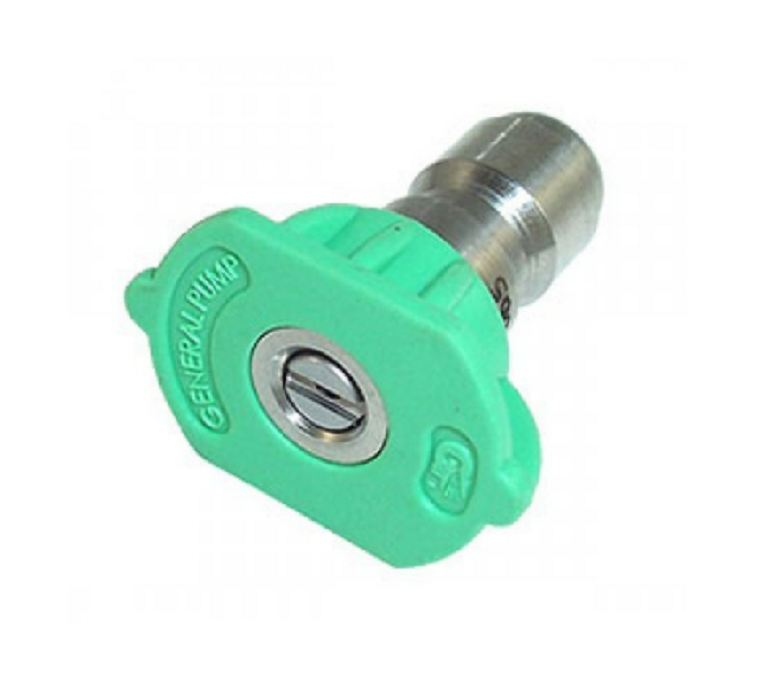 Description: Part # 255150 is a 3.5 size 25 degree quick connect spray nozzle designed to fit most 1/4" pressure washer couplers. The spray nozzle features a one-piece design with a stainless steel body and a spray alignment cap color-coded green for easy spray angle identification. Green nozzles, also known as "flushing nozzles", are a great choice for pressure washing jobs that involve cleaning dirt from siding, sidewalks, and outdoor furniture, as... Read More...