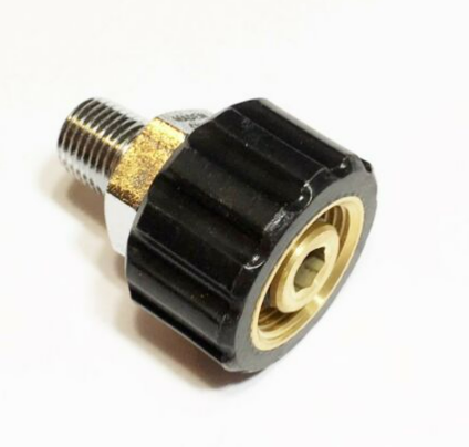 Part # 6312 is a 1/4" threaded male twist coupler designed to connect NPT threaded hoses or lances to 22mm pressure washer machines or guns. Inlet Size: 1/4" MPT. Maximum PSI: 4000.